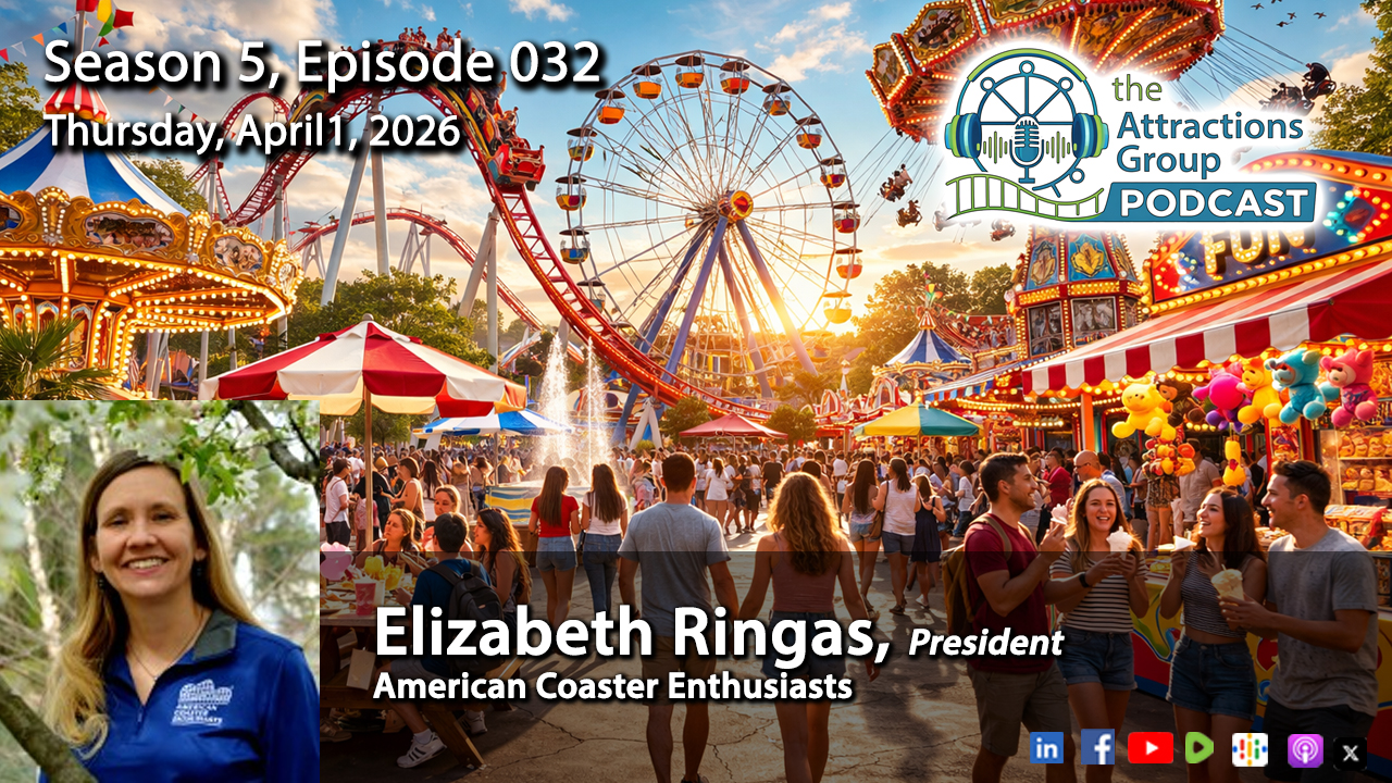 Join Clete Reinberger and David Detling on the Attractions Group Podcast as they welcome back Elizabeth Ringas, President of American Coaster Enthusiasts (ACE).