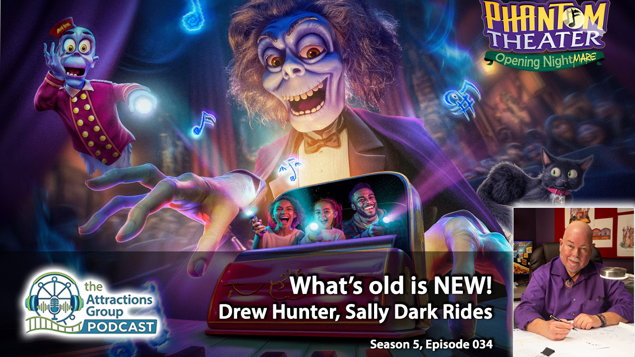 s5, e034- Designing Phantom Theater! Drew Edward Hunter of Sally Dark Rides | the Attractions Group Podcast